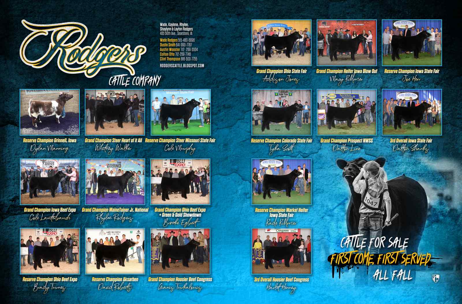Have The Showtimes design your next project! We offer industry leading graphic design for Ads, Banners, Sale Directories, Logos, Photo Backdrops, Product Labels and much more! We've worked with many of the biggest names in the business including the American Junior Maine-Anjou Association, Sullivan Supply, Rodgers Bulls, Sunglo, American Royal, Junior National Hereford Expo, Aksarben, Bonham Show Cattle, Goretska Show Steers, Chad Walker Livestock Co., Blue Team Wethers, Show Coat, Willow Springs, Natural Solutions, Blackout Jackpot and many others! The Showtimes was voted Best Graphic Designer back-to-back in the Best of the Barns Awards! Contact us today to get the Showtimes Effect for your next project!