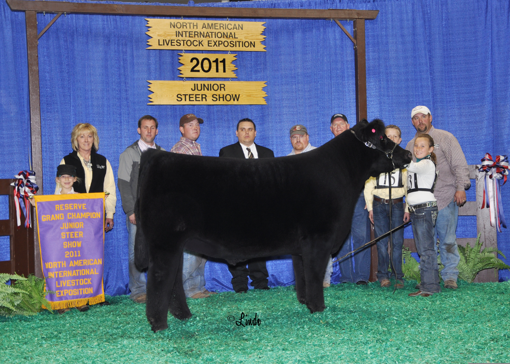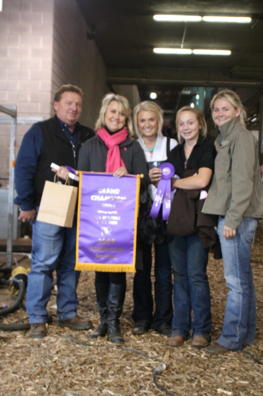 The next three years Regan Bowman, my brother-in-law now, took me under his wing and went clear out thruogh WY. Bought a group of 7 steer calves that year for $1200 a round from Paul Schmitz. That would have been one of his very first calf crops and man I thought that was a lot of money. Had a sale in Greenville, OH and one of those calves topped the sale at $12,100 and went on to be my first “big” win. I made some money, that steer won the TX State Fair, and I was off to the races. Bought a place in Tipton, IN and had sales there every year through the mid and late 90’s. Had some highlights like Adam Dryer at Kansas City in ’95, Nick Mauck at NAILE in ’96, Kevin Cooper at NAILE in ’97, Nick Mauck again at IN in ’97, Nathan Smith at OH in’98, Jaclyn Harrod at NAILE in’99, Grand and Res at IL in ’99 with Adam Dryer and Blair Branyon, Tyler Colburn at NAILE in ’00, Chad Day at NWSS in ’00, Lance Unger at NAILE in ’02, Monica Planalp at KC in ’02 and Chance Lautner in ‘03, Trent Printz and Opie Campbell was Grand and Res at OH in ’03 and Abby Harner in ’04. From there the steer show wins continued to snowball year after year that there is too many to mention but these were what got it started. Let’s just say we have been very blessed!